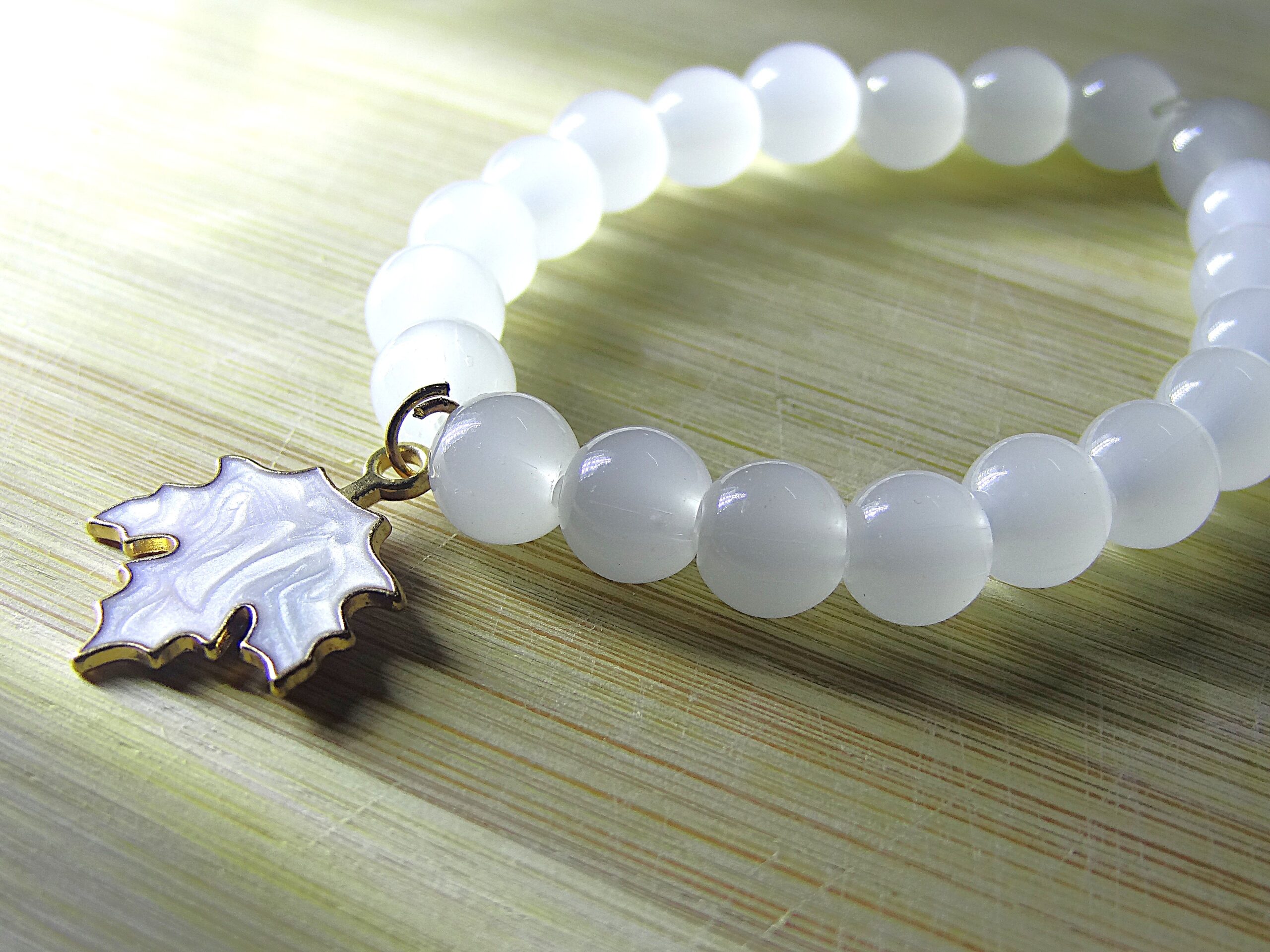Embrace grace and elegance with this stunning white beaded bracelet, featuring a delicate leaf charm that symbolizes growth, renewal, and beauty.